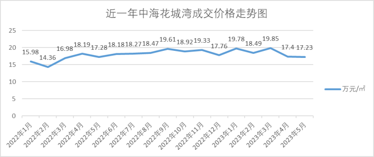 以热门小区中海花城湾为例,4月成交均价为17.4万元/㎡,5月成交均价为17.23万元/㎡,降幅约为1700元/平