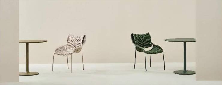 曾静华在餐椅的设计中使用了椅子的坐面和靠背呈现出三维曲面的结构,以 两种不同硬度的编织绳交织而成,编织非常考究手工制作工艺,需要经验丰富的 师傅精准把控经纬方向的紧密程度,才能形成现在我们看到的犹如发丝般飘逸的 曲线。当人坐下时,坐面和靠背会随着人的形体和姿势产生可恢复的形变,使椅 身完全贴合人体曲线,给坐在上面的人带来柔软细微的坐姿体验,在互动中感受 LIVINTWIST 希望给人们带来的奇妙欢乐。