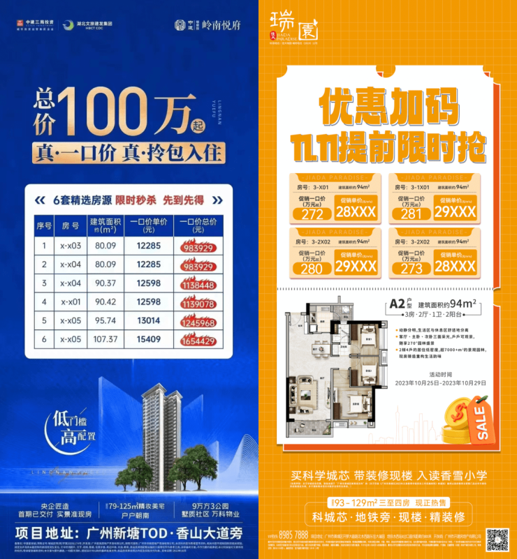 位于永宁板块的中建·鄂旅投岭南悦府,本周推出6套一口价单位,单价低至12XXX元/㎡,总价98w/套起,价格很笋,用同事的原话说就是:“太卷了,周边项目还要不要活了”。项目自建有4400㎡商业街,5分钟即达悠方购物广场和广州钧明欢乐世界,周边配套成熟。