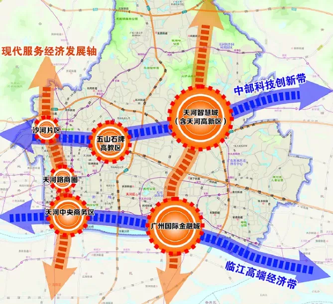 根据十四五规划显示,地块属临江高端经济带,依托天河中央商务区、广州国际金融城发展平台,巩固金融业、高端专业服务业发展优势,做大做强数字创意、数字贸易、人工智能、数字金融等产业,推动总部经济、高端商务楼宇、城市标志性景观等高端要素集聚,支撑天河打造粤港澳大湾区经济引擎。