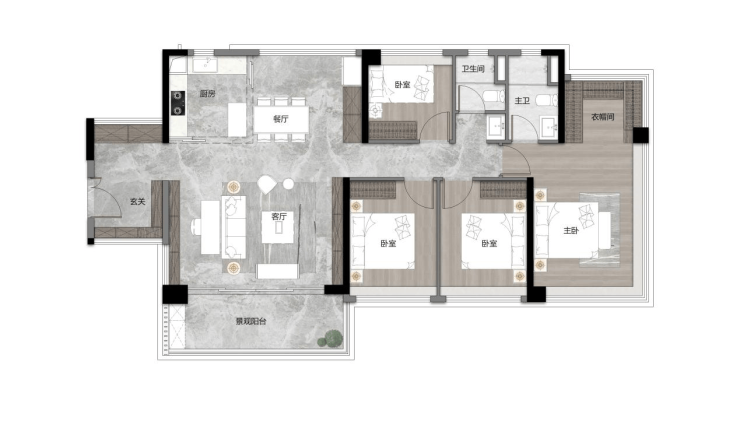 「约143㎡鼎配户型|行政双主套+约20米南向面宽+约6.3米观景阳台」