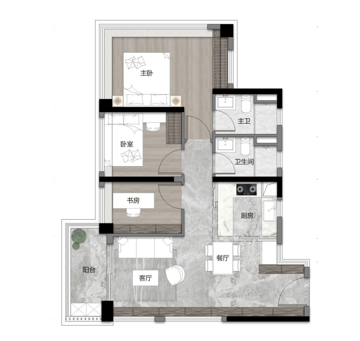 谁说小户=妥协?这里偏做出南向三房+双卫!可以说放眼全天河,仅此户型以极致面积实现全能生活。