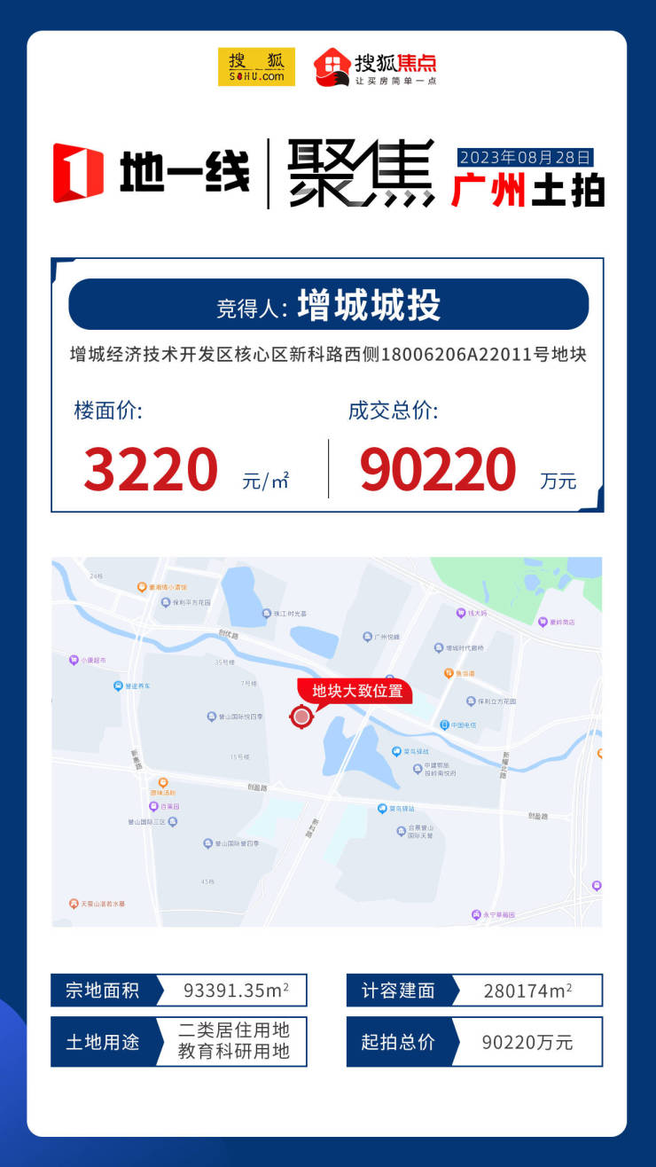 广州市增城经济技术开发区核心区新科路西侧18006206A22011号地块成功出让,由广州市增城区东进城市开发投资有限公司底价拿下。