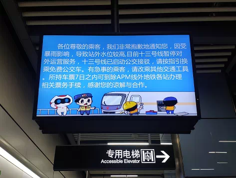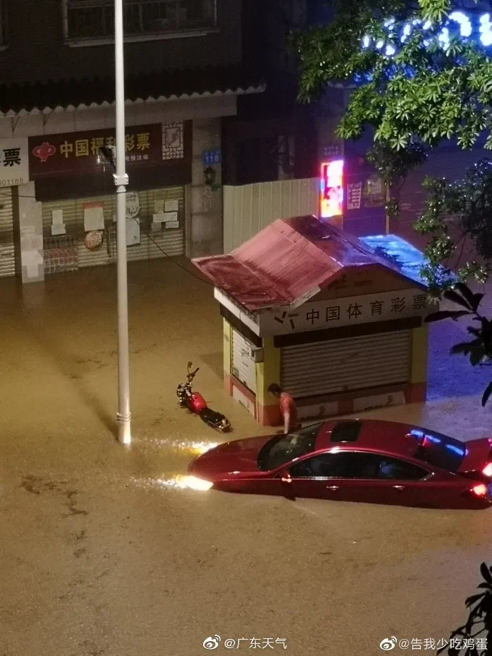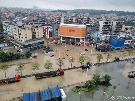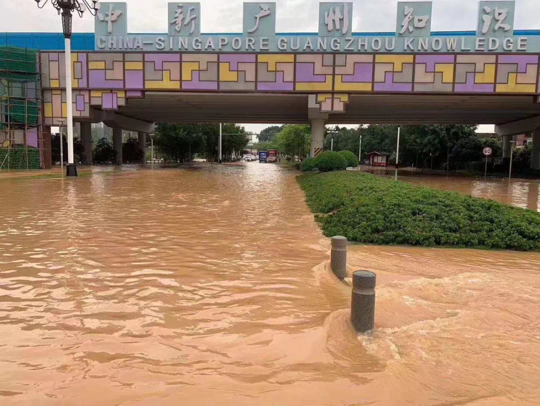 此外,广州各片区、各交通要道也是处于严重的“水浸”状态或堵车状态中,连广州地铁十三号线因官湖车辆段地面积水严重、雨水倒灌隧道导致无法出车,暂停运营。