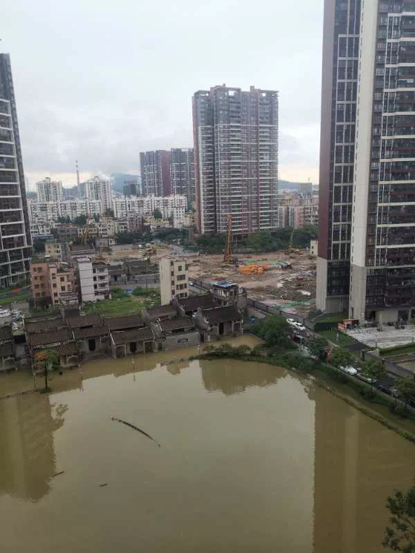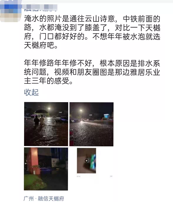受此次暴雨影响,不少楼盘也是处于一片汪洋之中。部分业主也是郁闷不已。