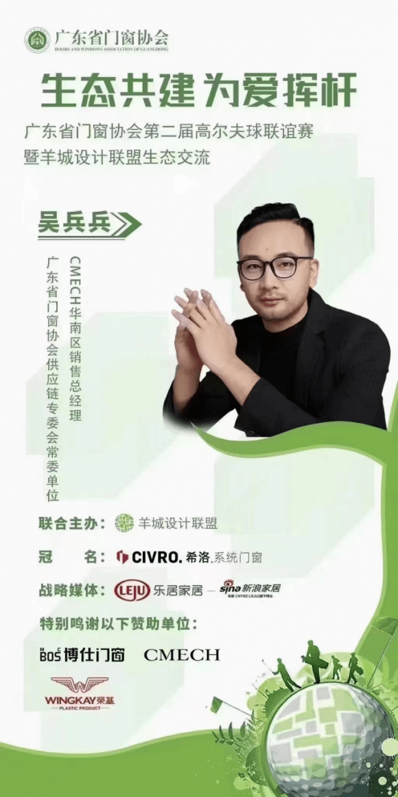 作为广东省门窗协会供应链专委会常委单位,CMECH希美克也受邀参与了本次联谊赛,CMECH希美克中国区销售总经理张杰和华南区销售总经理吴兵兵作为品牌代表与30多位门窗行业代表一起挥杆角逐,交流共进,发挥以球促商、以赛促商的高尔夫精神。