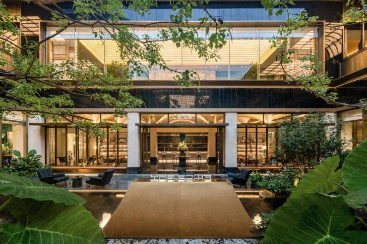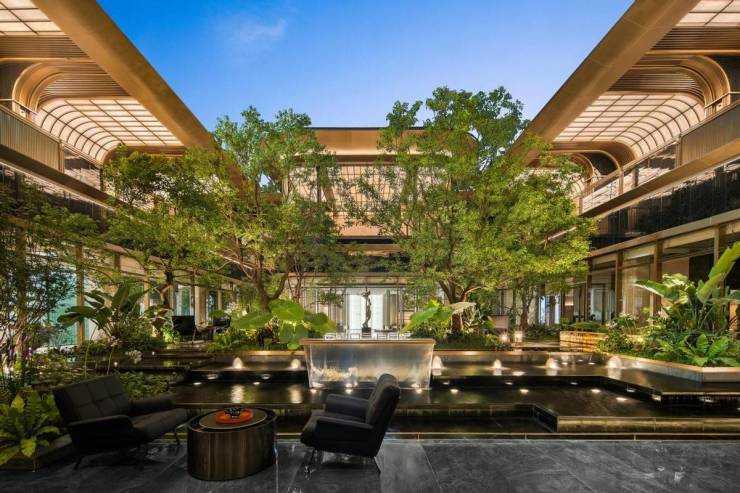 以“岭南溪涧”为动线灵感,串联咖啡区、书吧与健身房,在自然光与材质的调和中,形成静谧且克制的生活氛围。