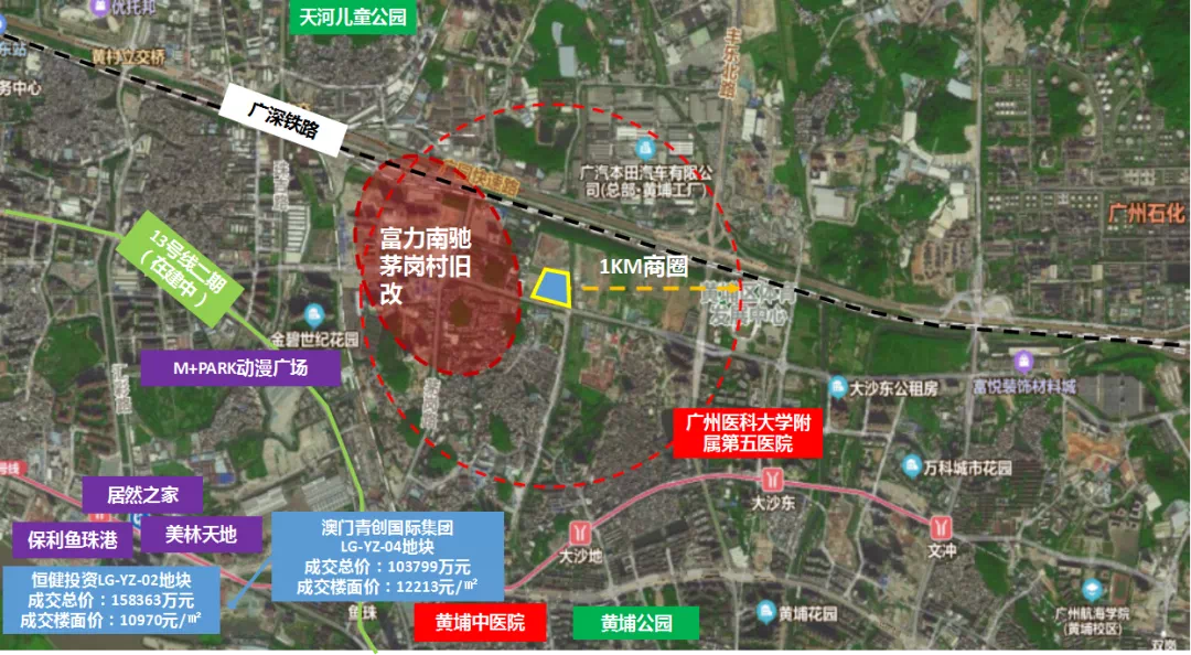 地块位于护林路以北、丰乐路以西,紧挨富力南驰茅岗村旧改项目。属老黄埔板块,配套完善,紧挨鱼珠港商圈,为黄埔三大商圈中少有的都市级商圈。