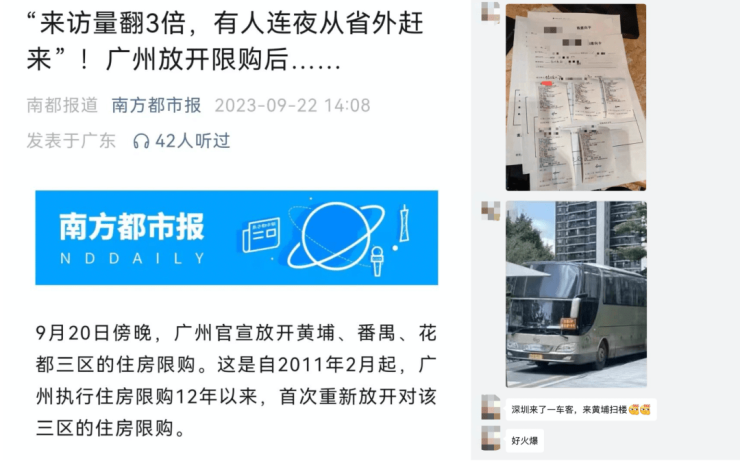 因此,在限购放松当天,便有外省购房者连夜奔赴广州,不少项目的来访量相比之前翻了3倍之多,更有甚者,“深圳客组团来广州黄埔扫楼”。