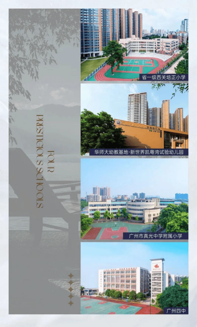 作为广州中心区高品质社区的代表,新世界凯粤湾不仅占据白鹅潭第一圈层的中心位置,更以其卓越的居住环境和生活方式,吸引众多追求高品质生活的高知家庭。作为广州中心区在售唯一享受6万m²园林的楼盘 、还是最成熟的江岸教育大盘、更是首个做到大规模“交楼即办证”,不管是内外部硬件配套,社区生活氛围营造,都已成为白鹅潭第一圈层最具质价比的品质江岸亲融生活大盘。7000户业主汇聚于此,美善融亲四大亲融底蕴支撑起社区人文生活的日常温度。