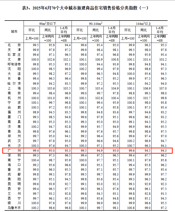 日前,国家统计局公布了2025年6月70城商品住宅销售价格变动情况。