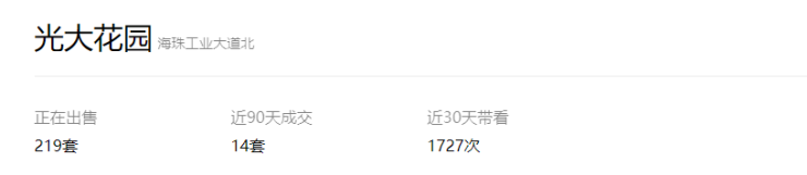 大型小区光大花园,因具有地铁(沙园站上盖)、教育及社区环境等优势,也一直备受市场青睐。链家平台数据显示,截止至7月26日,该小区一个月的带看量已达1727次。