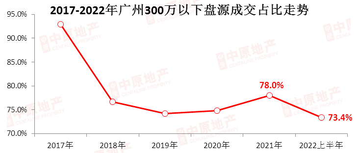 数据显示,300万元以下盘源成交占比仅达73.4%,环比大减4.6%。