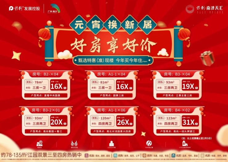南沙的保利南沙天汇推出6套特价房,三房低至16x万起,准现楼,今年买今年住。