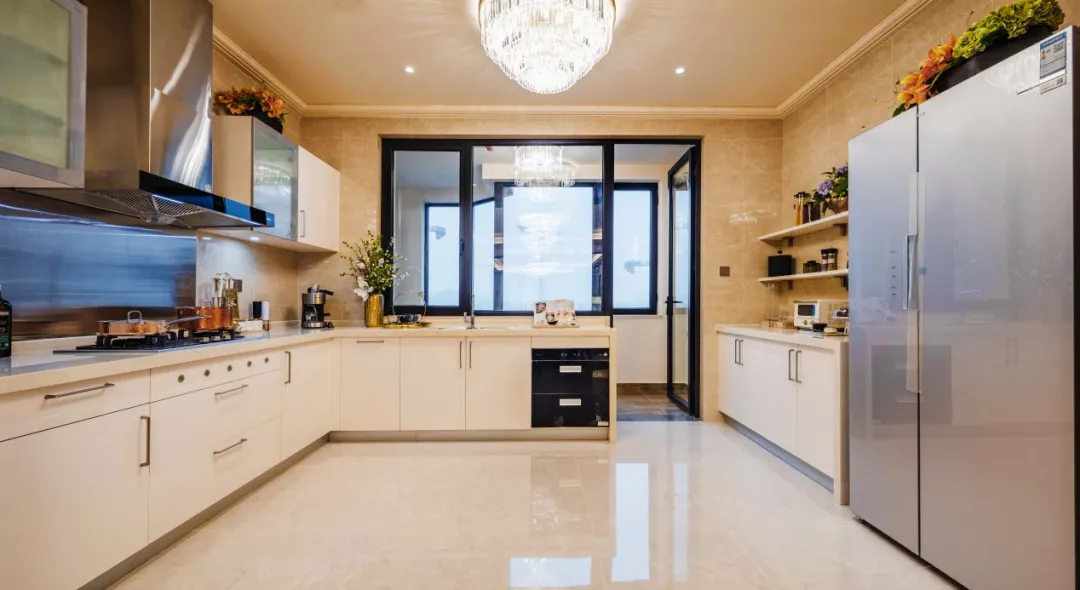 整个餐橱体系上,将观景阳台、餐厅、厨房三者合为一个整体,达到观景+就餐+烹饪乐趣多重体验。而整个厨房里,将洗菜、准备、炒菜等线路规格清晰,大大节省了做菜时的时间。