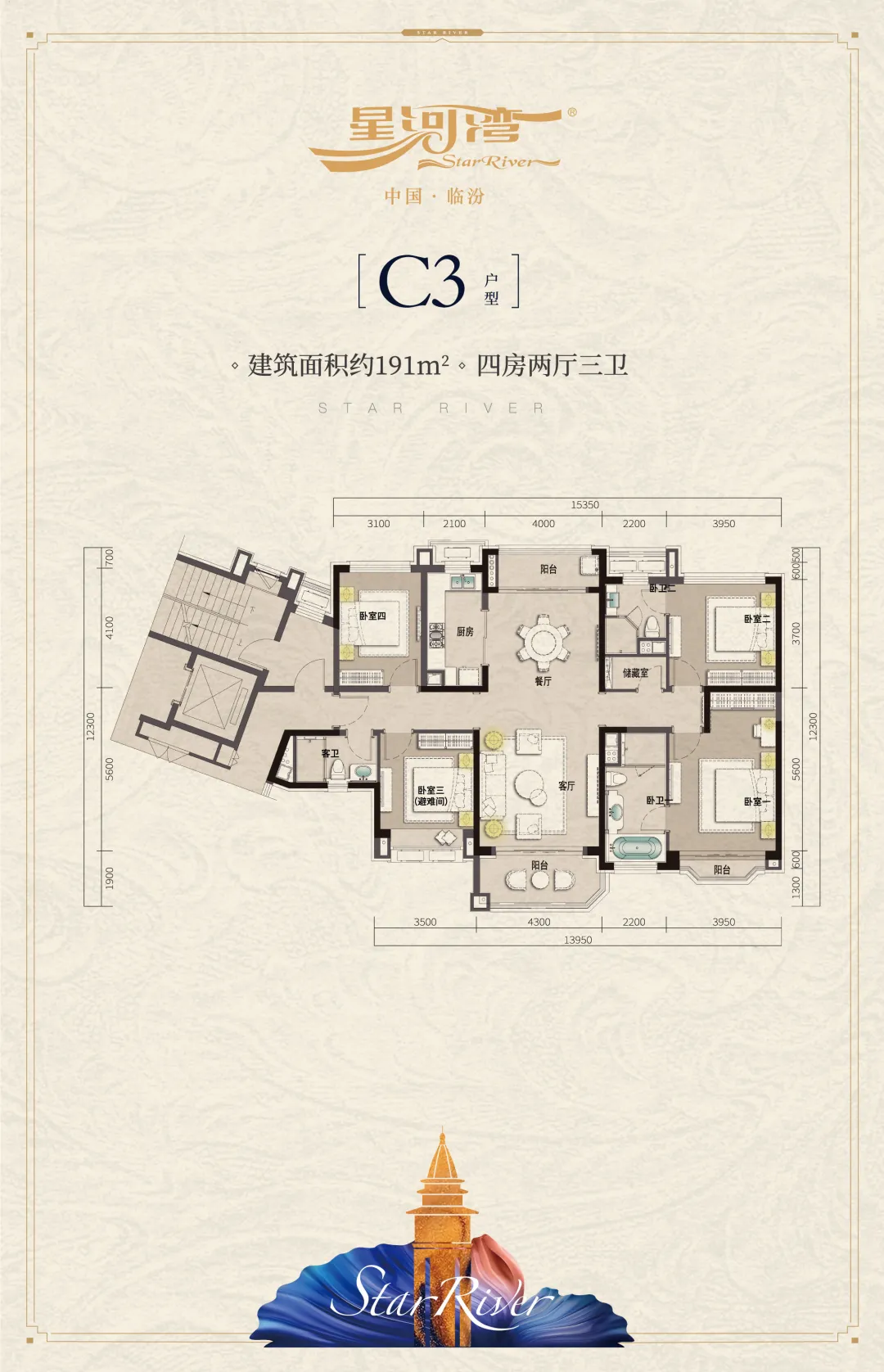 而在临汾星河湾热销产品中,最为抢手的当属四房产品。临汾星河湾191㎡定制四房,顾全到业主家庭的家族理念、时间观念、饮食文化、私人享受等因素,此户型从格局系统、智能系统、餐厨系统、作息系统出发,深度匹配热爱生活的业主。