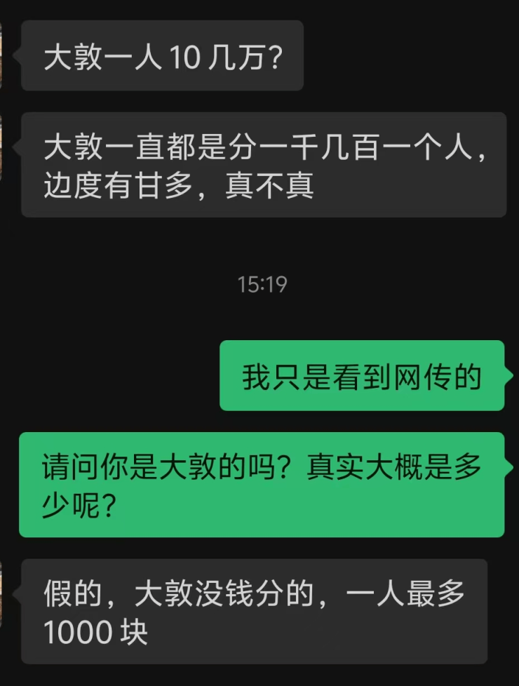 “大敦这两年才有分红,一年两三千”