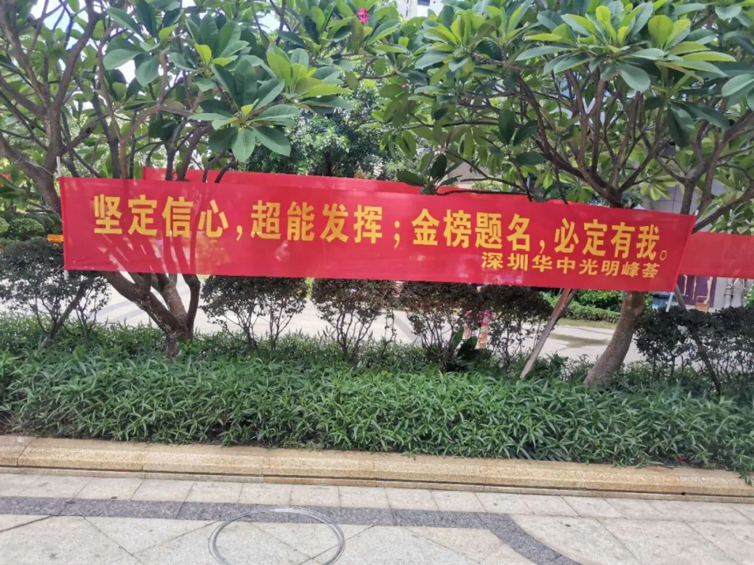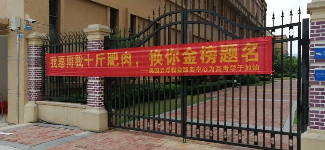 “我愿用我十斤肥肉 换你金榜题名”“清华揽月 北大摘星 奥园学子奥利给!”一条条精心准备的横幅奥园学子由我们来守护手写祝福 寄予最美高考祝愿