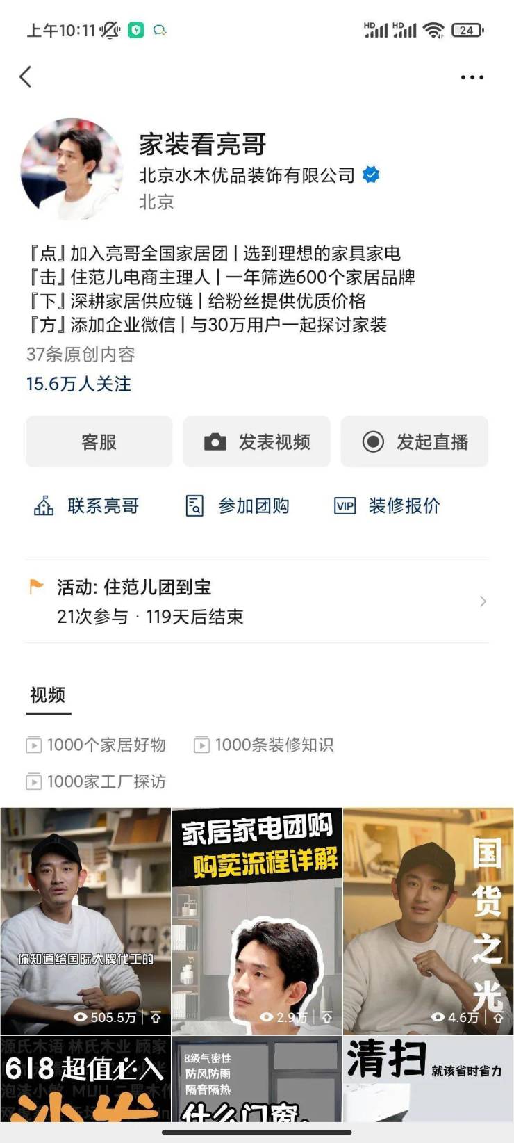 其中,“家装看亮哥”定位于家居供应链的筛选,帮助用户买到理想的家具家电,并能为粉丝提供优惠的价格,目前,账号不到半年已经积累超过15万粉丝。