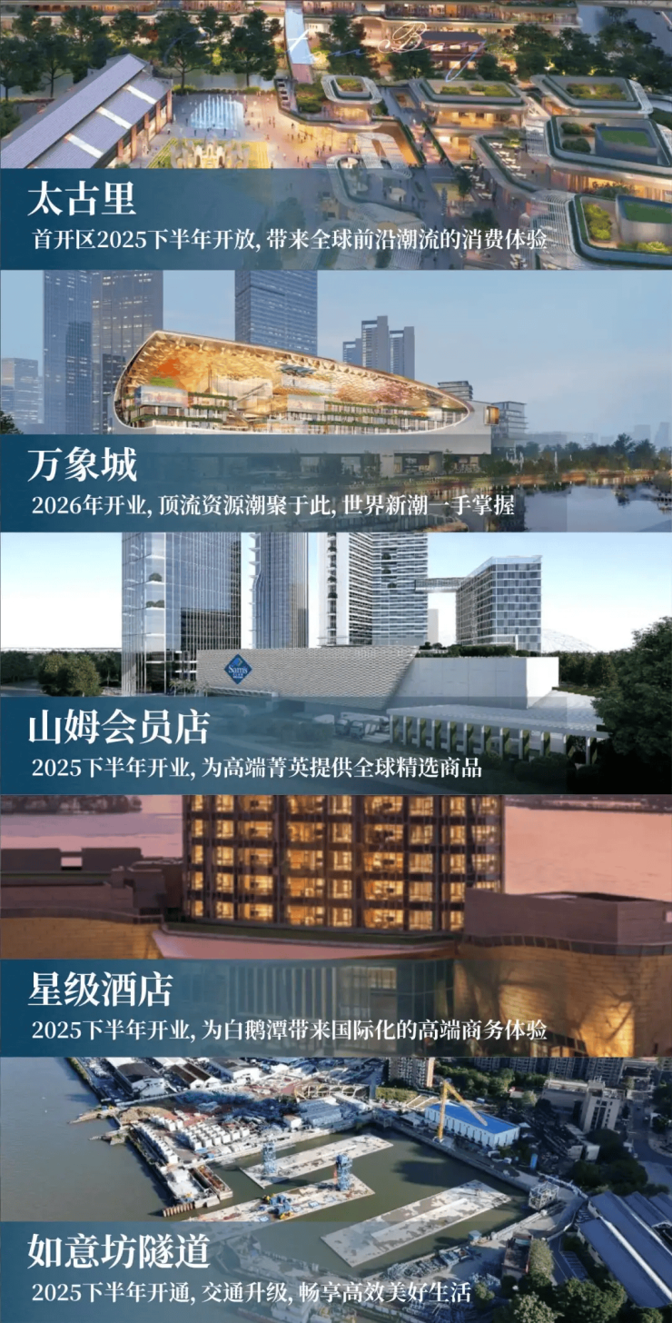 其中,白鹅潭大湾区艺术中心、COCO Park、地铁11号线等均已启用;如意坊隧道或年底完工通车,打通珠江南北岸的交通要塞;重奢商业鱼贯而入,中国首个滨江太古里预计年底首开,广州第一座万象城封顶招商,计划明年开业;五星级酒店挂牌,吸引顶级资源留驻……滨水经济、智慧商圈、岭南文脉、总部基地、人居社区,正在编织成白鹅潭的“24小时活力共同体”。