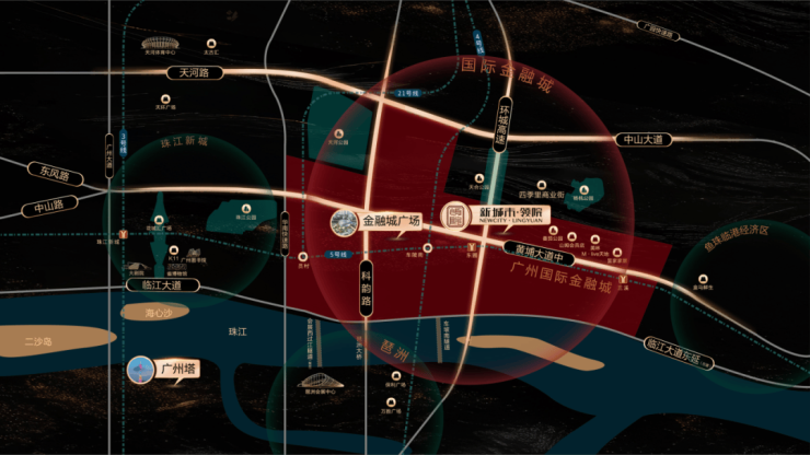 黄金产业引擎枢纽,处于金融城东区,西接珠江新城、北承天河智慧城、东融鱼珠港,坐享50万+精英人口红利,新城市领院是金融城核心区在售纯住宅项目,更具居住纯粹性。