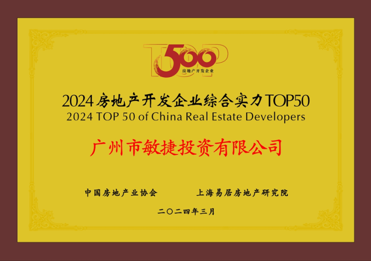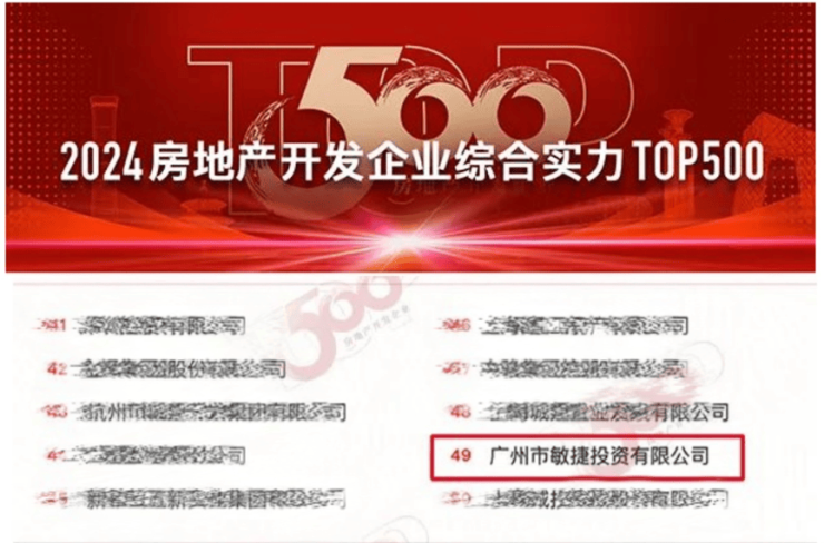 2024年房企综合实力测评成果发布,敏捷集团位列第49位