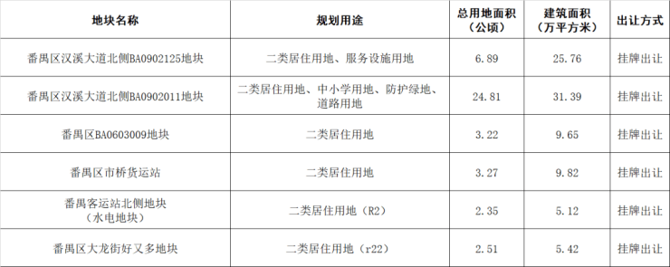 接下来,广州市规划自然资源局还会同有关部门有序组织上述地块的出让工作,清单中具体内容最终以挂牌出让公告为准。