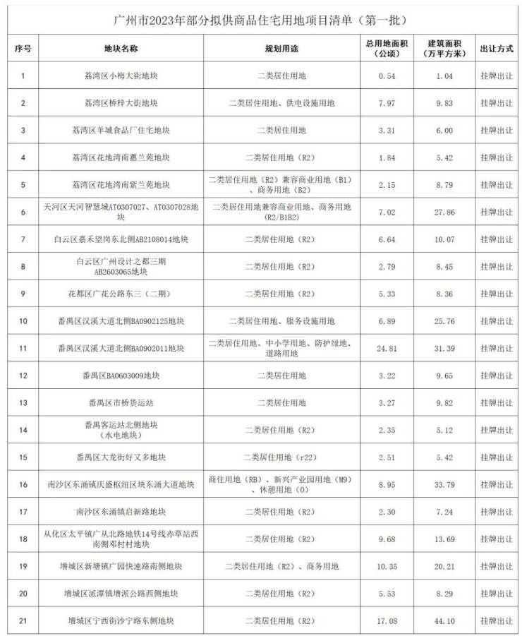 在此基础上,如我们所见到的,广州公布了2023年部分拟供商品住宅用地项目清单(第一批)。