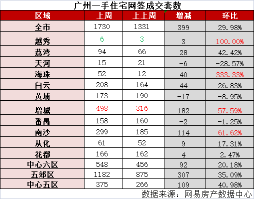 连跌3周后终反弹!上周广州一手楼卖了1730套,涨了三成