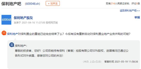 保利地产没有直接回应,只是说:公司目前持有保利(香港)控股有限公司50%股权,进展情况已通过公告形式对外披露。