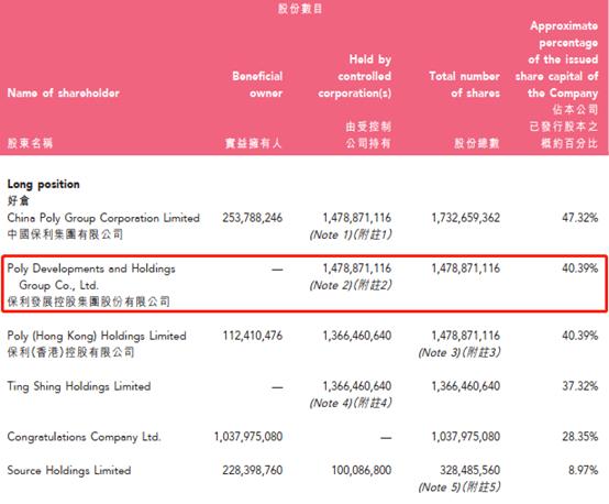 保利置业2020年的年报中,保利地产根据证券及期货条例被视为持有保利(香港)控股有限公司所直接及间接拥有之股份之权益占比为40.39%。
