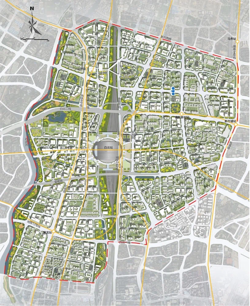 白云区以白云站建设为契机,通过“控规+城市设计”谋划枢纽周边地区的城市功能格局。