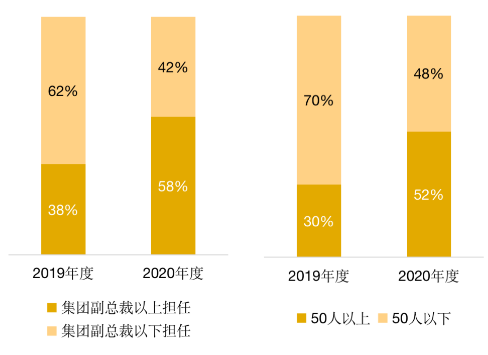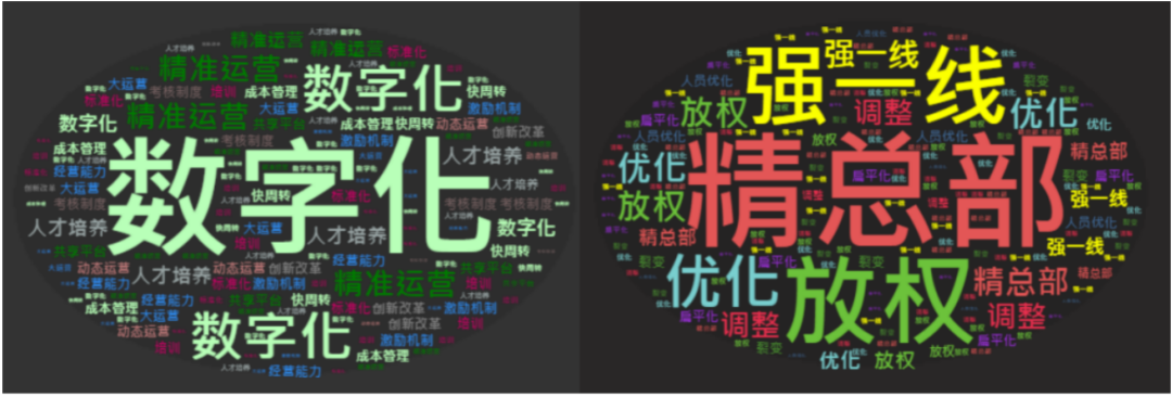 最后,在今年业绩发布会上,企业管理和组织优化成为关键话题。其中频繁被提到的是数字化与大运营。而组织调整方面,放权一线、优化人员结构是2021年的主要方向。