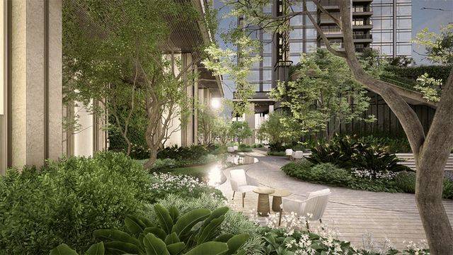 园林设计上,联手泰国TROP团队,借鉴新加坡垂直绿化的手打,打造项目的垂直森林。露天垂直景观花园、高区的空中绿洲、商业街的下沉绿庭,满屏的野奢酒店度假感。