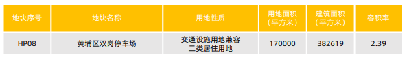 该地块为交通设置用地兼容二类居住用地,宗地面积为170000㎡,建筑面积为382619㎡,容积率为2.39。