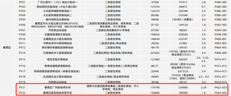 番禺新增两块宅地,分别是番禺区广州新城停车场、番禺区展贸城地块首开区。