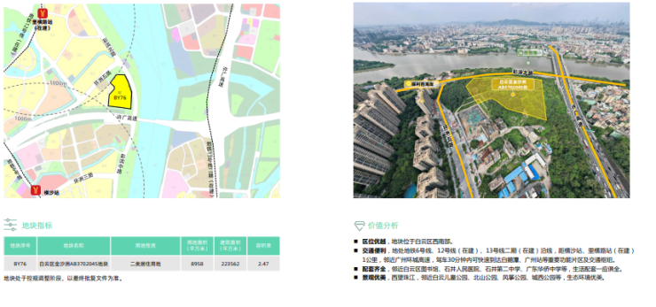 该地块位于广钢新城,距地铁鹤洞站、鹤洞东站(在建)500米内,驾车30分钟可到达琶洲商务区、广州南站、佛山市区等重要功能片区。