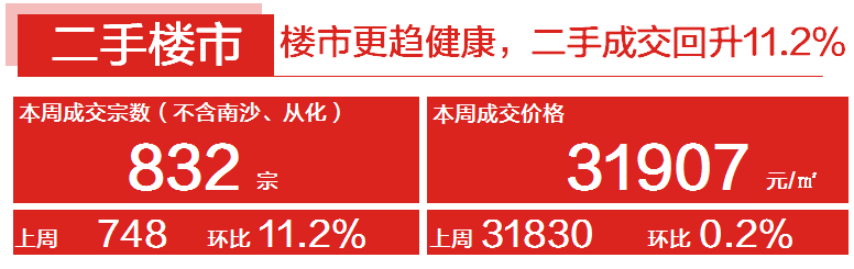 本周二手住宅共成交832宗,虽环比上涨11.2%,但周度成交量仍不足千总水平。