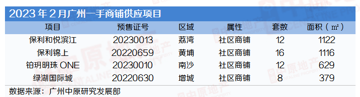 另外,南沙区铂玥明珠ONE、增城区绿湖国际城各入市少量社区商铺。