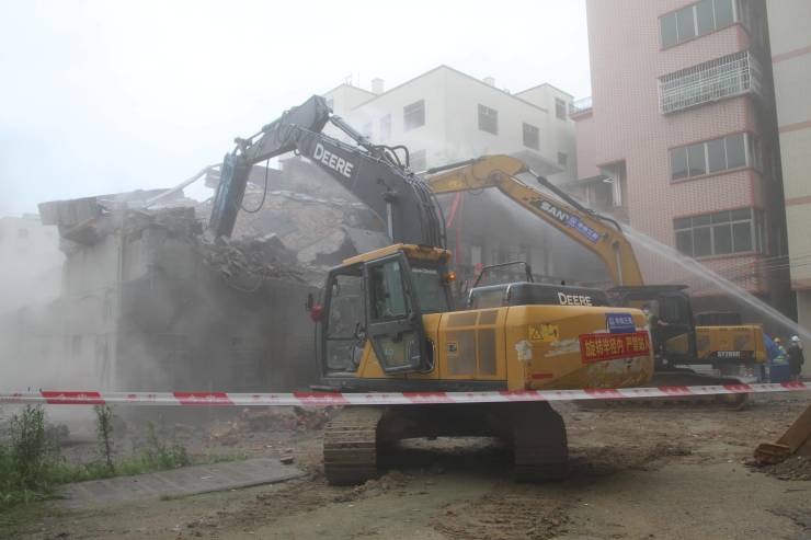 当天9时30分,拆卸工作正式启动。在明星村,两个拆卸点同时开工,拆卸现场安全有序,周边都进行了层层围蔽,确保住户及行人安全。每个拆卸点均安排了工作人员,全面保障各项工作顺利开展。各拆卸点均安排了几台钩机同步拆卸,还有多台洒水车同步作业,避免扬尘污染。