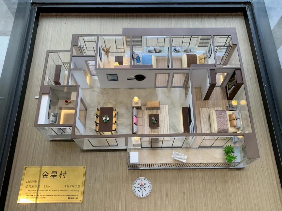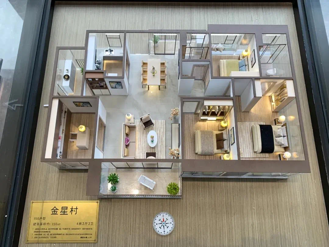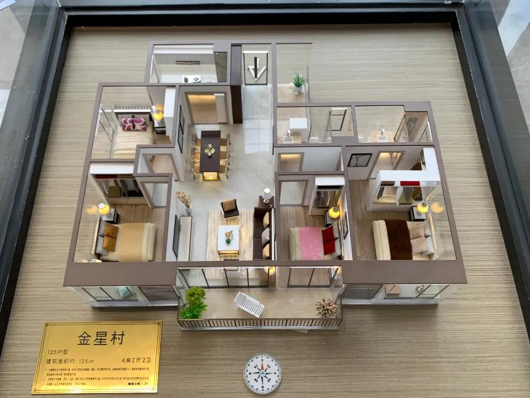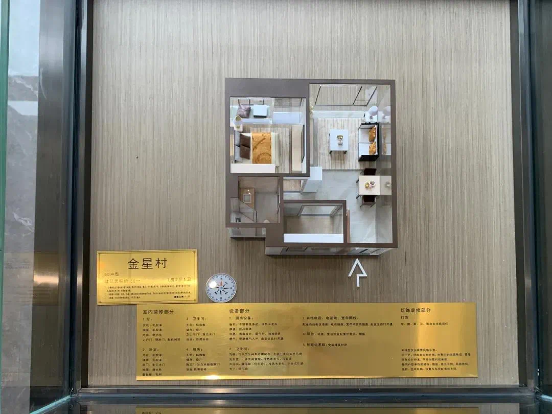 村集体物业复建效果图 50-200平 9种不同的回迁户型 在金星村安置区展示服务中心里面,已经展示出关于金星回迁房的9个户型,涉及50平方米-200平方米的1房-5房户型。●50平1房2厅1卫