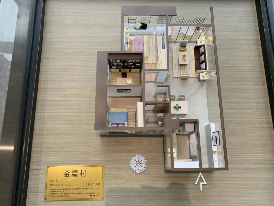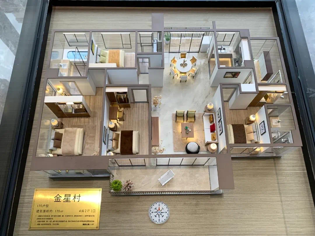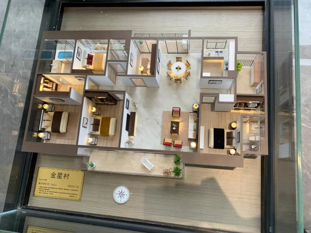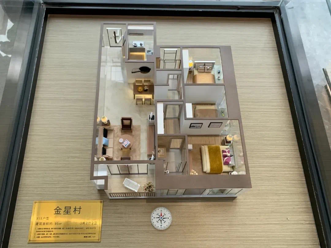 村集体物业复建效果图 50-200平 9种不同的回迁户型 在金星村安置区展示服务中心里面,已经展示出关于金星回迁房的9个户型,涉及50平方米-200平方米的1房-5房户型。●50平1房2厅1卫