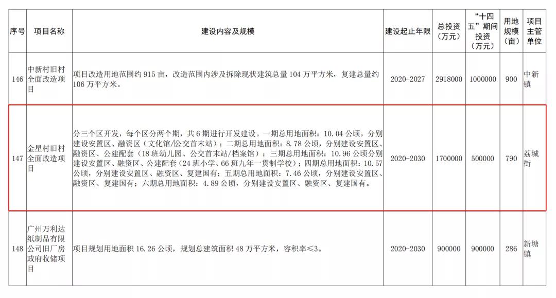 同时值得一提的是,在今年增城“十四五”规划中金星村旧村全面改造项目的投资金额被提升到了170亿元。