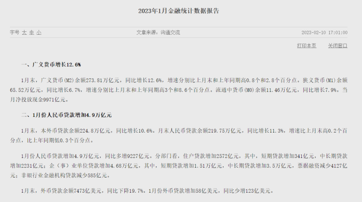 央行:1月信贷投放增加4.9万亿!增量史上最高
