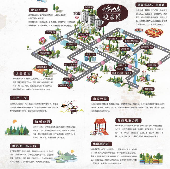 学校配套方面,科城山庄配置了两所公立幼儿园,小区内配套广州高新区第一小学,中学方面有科学城中学、省教育研究院黄埔实验学校、北师大广州实验学校、铁英中学、二中苏元实验学校等学府,家门口一站式教育有了。