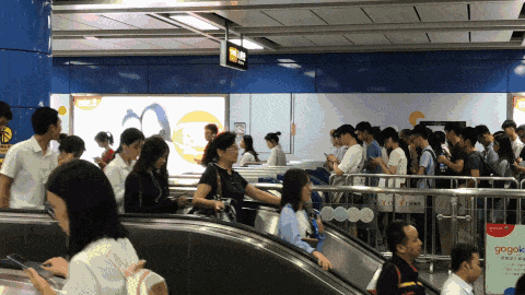 ▲珠江新城地铁站在高峰期会实行限流。