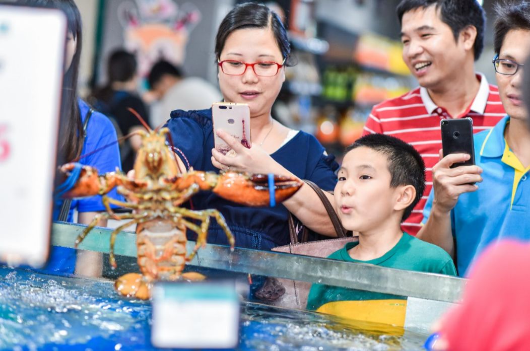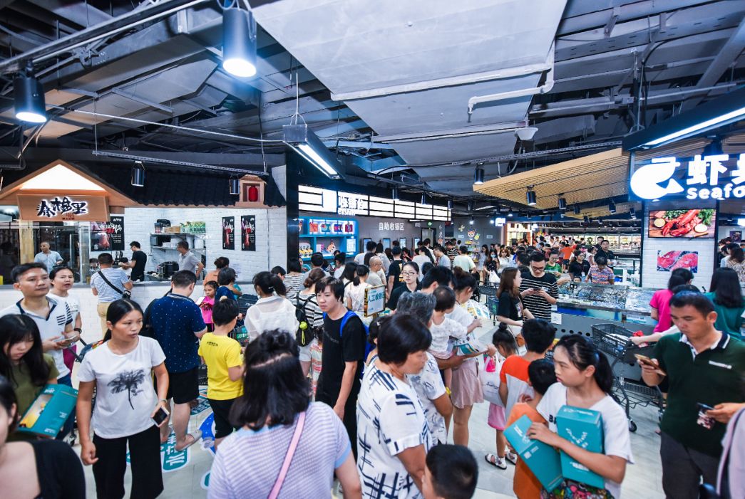 海鲜零售区,将食材零售变为体验餐饮+销售的场景融合模式。消费者选取龙虾、蟹、小龙虾、扇贝、青口、牛羊肉等散装生鲜食材,即可现场加工,还有日式料理、面包、糕点、茶饮等,轻松即享美味。