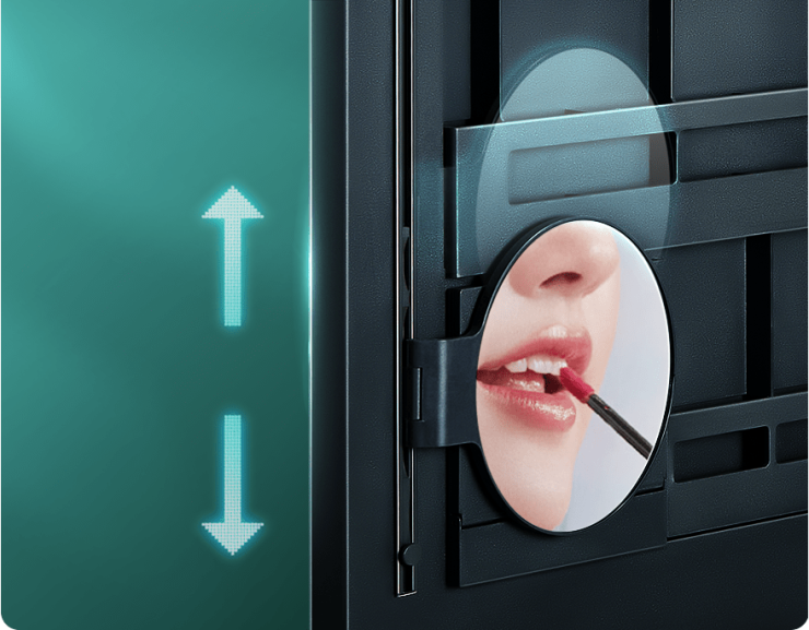 被忽略的痘痘的小瑕疵,不小心化歪了的眼线,三倍放大功能,让皮肤质感和妆容细节都高清可见,随心调节高度,再也不用踮起脚尖瞪大眼睛。