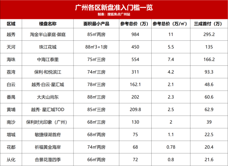 根据搜狐焦点网站楼盘信息库显示,血拼哥发现目前广州中心四区新房最低总价大约在311万左右,也就是首付门槛起码要93万以上。