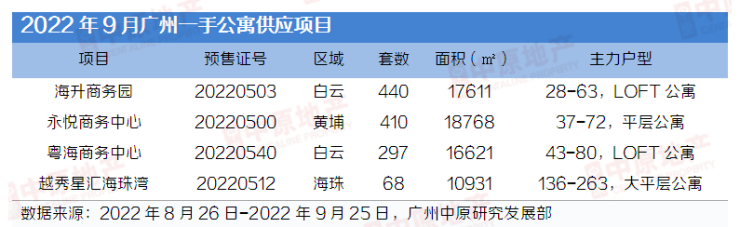 本月共4个项目获得公寓批售,其中白云区2个全新项目入市。